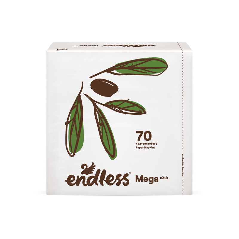 Endless Χαρτοπετσέτα Mega Ελιά Λευκή 33X33 70φ.