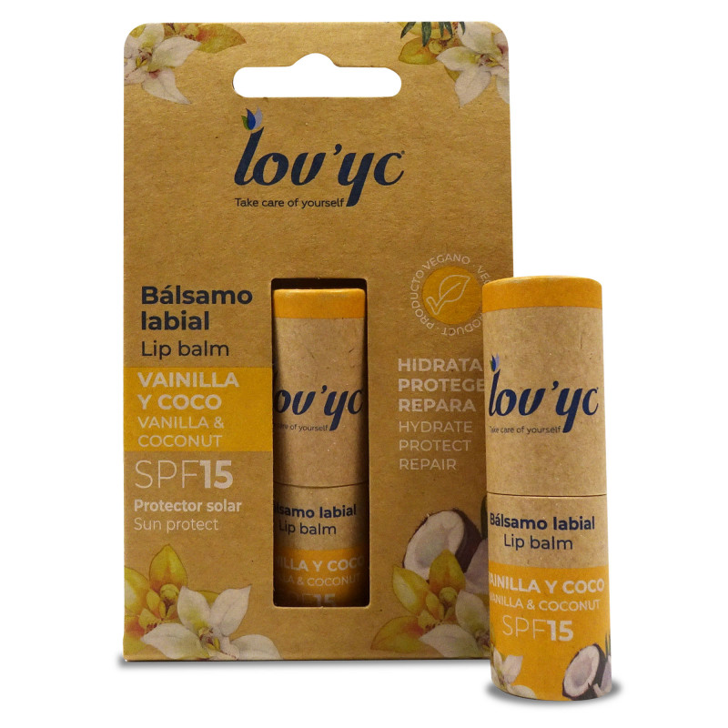 Το LOV’YC Lipstick Balm Vanilla & Coconut Sun Protect SPF15 8gr είναι ένα βάλσαμο χειλιών που προσφέρει καθημερινή φροντίδα και προστασία. Ενσωματώνει αντηλιακή προστασία SPF15, προστατεύοντας τα χείλη από τις βλαβερές ακτίνες UVA και UVB. Η σύνθεσή του περιλαμβάνει μελισσοκέρι, ηλιέλαιο, βούτυρο καριτέ, λάδι αβοκάντο και ελαιόλαδο, τα οποία θρέφουν και ενυδατώνουν την ευαίσθητη επιδερμίδα των χειλιών, αποτρέποντας την ξηρότητα. Επιπλέον, διαθέτει υπέροχη γεύση βανίλιας και διακριτική λάμψη. Το προϊόν είναι χωρίς parabens και είναι cruelty-free.