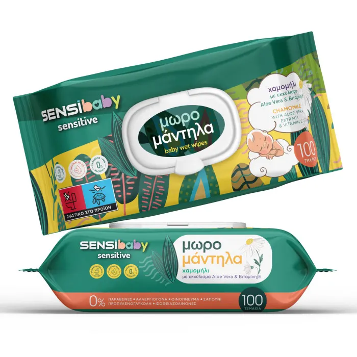 SENSIBABY Μωρομάντηλα Χαμομήλι Aloe Vera & Βιταμίνη Ε 100τεμ.
