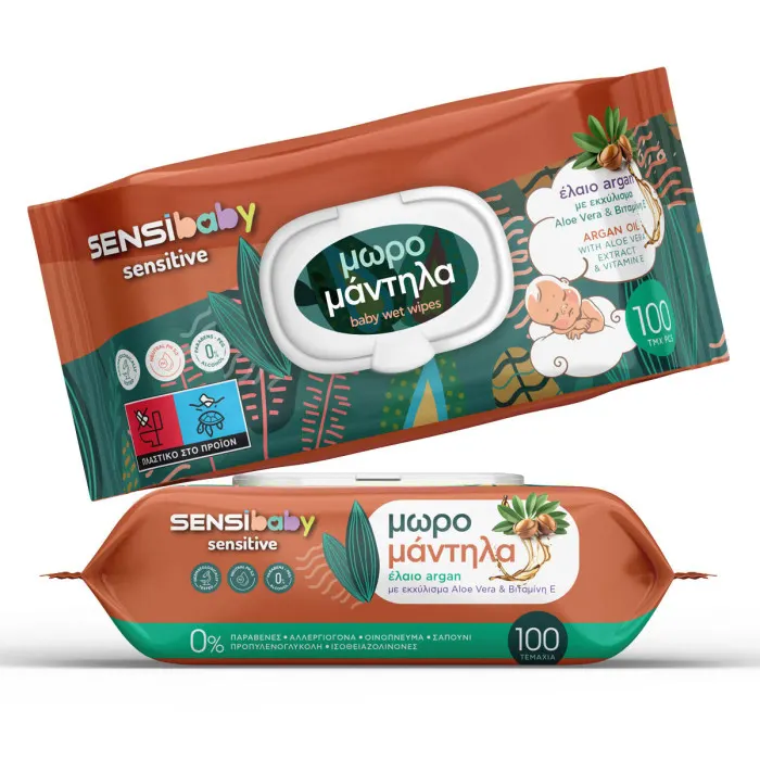 Τα SENSIBABY Μωρομάντηλα Ελαιό Argan – 100 τεμάχια σχεδιάστηκαν ειδικά για την ευαίσθητη επιδερμίδα των βρεφών, ακόμα και από την πρώτη ημέρα της ζωής τους