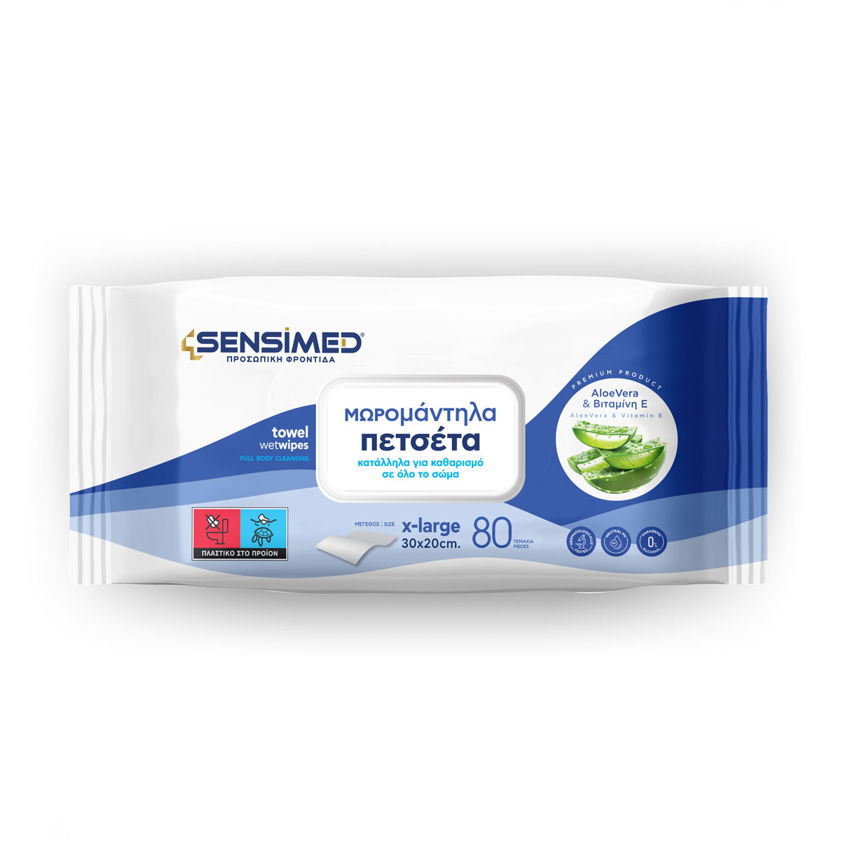 SENSIMED Μωρομάντηλο Πετσέτα XL 30x20cm 80τεμάχια Με Aloe Vera & Βιταμίνη Ε